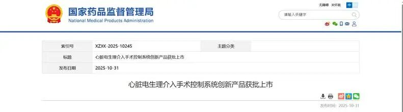 2025年10月31日,國家藥品監(jiān)督管理局批準紹興梅奧心磁醫(yī)療科技有限公司(以下簡稱“梅奧心磁”)的“心臟電生理介入手術(shù)控制系統(tǒng)”(商品名:提香? TITIAN)上市。