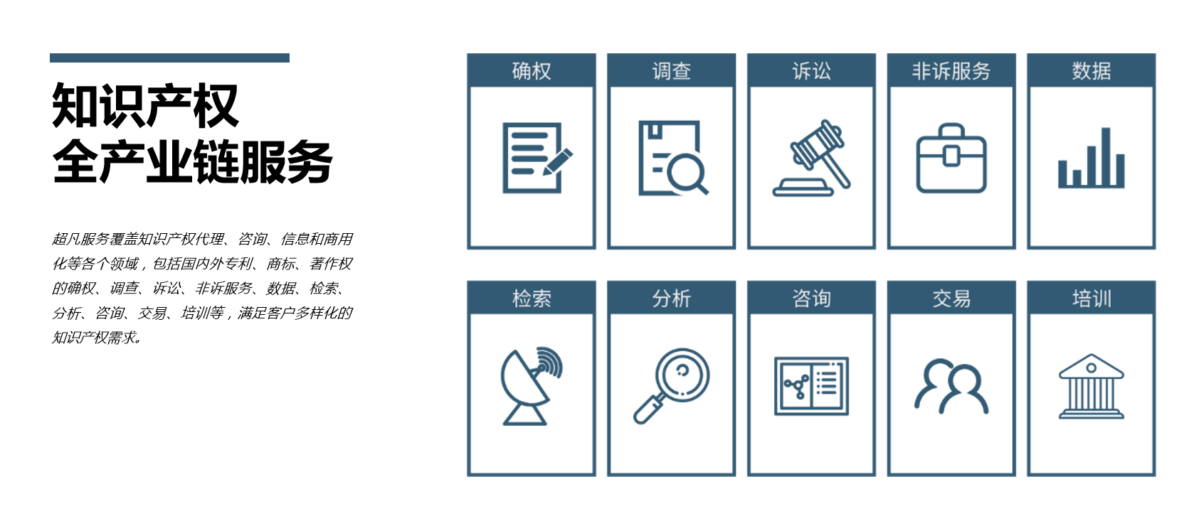 超凡設(shè)立了包括知識(shí)產(chǎn)權(quán)代理公司、律師事務(wù)所、知識(shí)產(chǎn)權(quán)咨詢公司、知識(shí)產(chǎn)權(quán)運(yùn)營公司、知識(shí)產(chǎn)權(quán)培訓(xùn)公司、知識(shí)產(chǎn)權(quán)研究院在內(nèi)的30余家知識(shí)產(chǎn)權(quán)服務(wù)機(jī)構(gòu),形成了集“確權(quán)、調(diào)查、訴訟、非訴服務(wù)、數(shù)據(jù)、檢索、分析、咨詢、交易、培訓(xùn)”等知識(shí)產(chǎn)權(quán)全產(chǎn)業(yè)鏈發(fā)展的格局。目前,超凡在全國22個(gè)城市設(shè)立了本地化服務(wù)機(jī)構(gòu),覆蓋了北京、成都、深圳、廣州、杭州、重慶、長沙、武漢、蘇州、南京、天津、上海、青島、佛山、濟(jì)南、鄭州、沈陽、常州等22個(gè)城市。