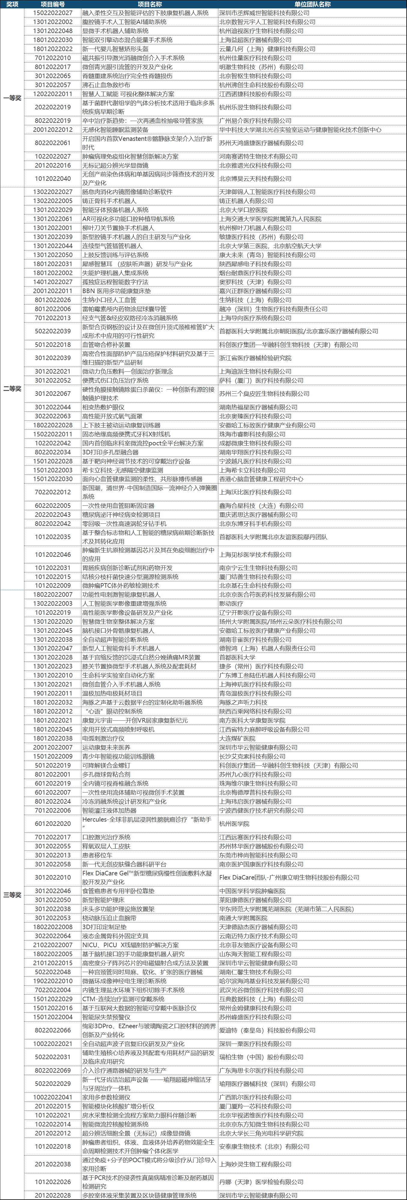 第五屆(2022)中國(guó)醫(yī)療器械創(chuàng)新創(chuàng)業(yè)大賽決賽獲獎(jiǎng)名單